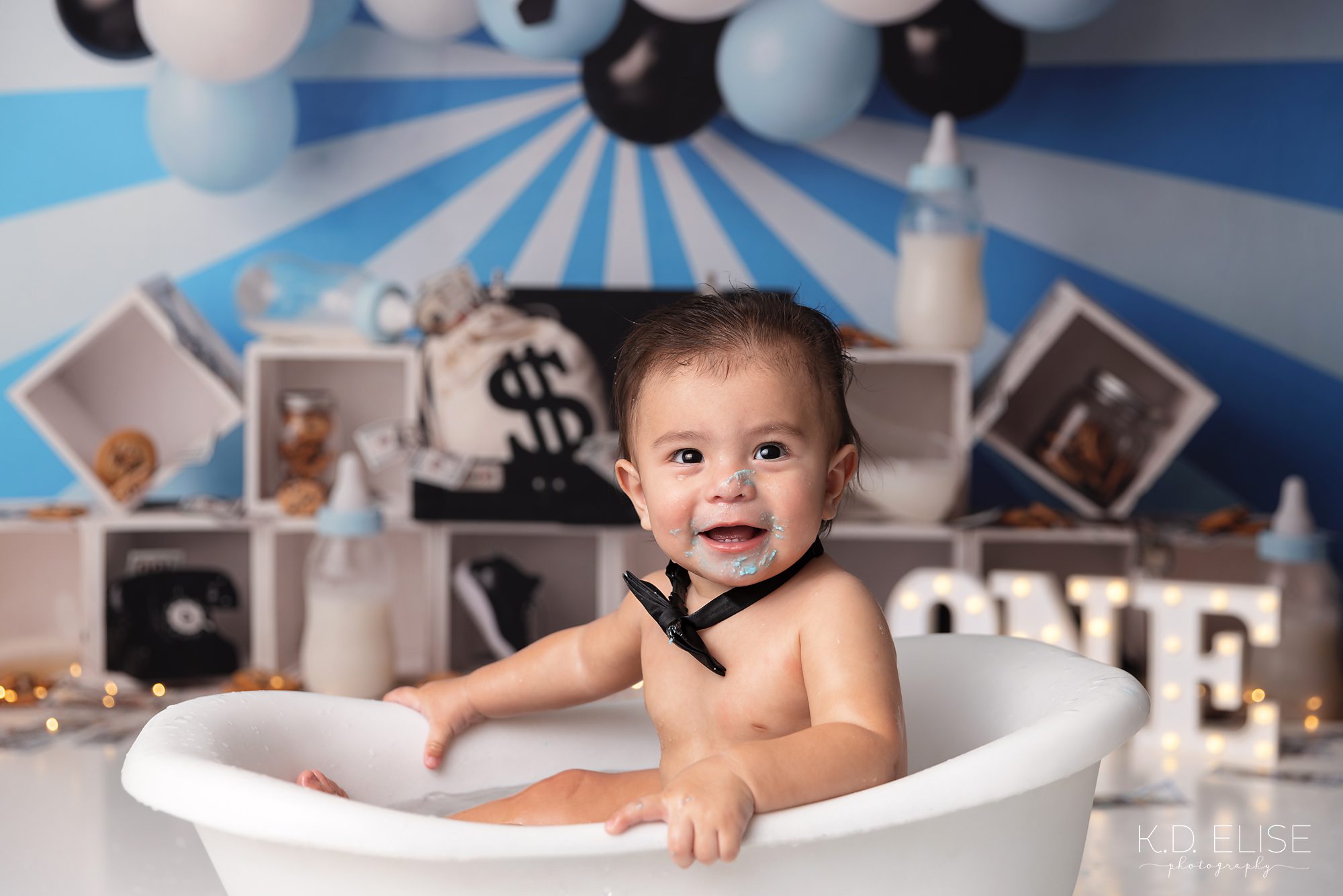 All cake smash sessions take place in my Pueblo studio, where everything is designed with babies in mind. From the claw foot tub to the warm, welcoming environment, the studio allows for a smooth and stress-free experience from beginning to end.
